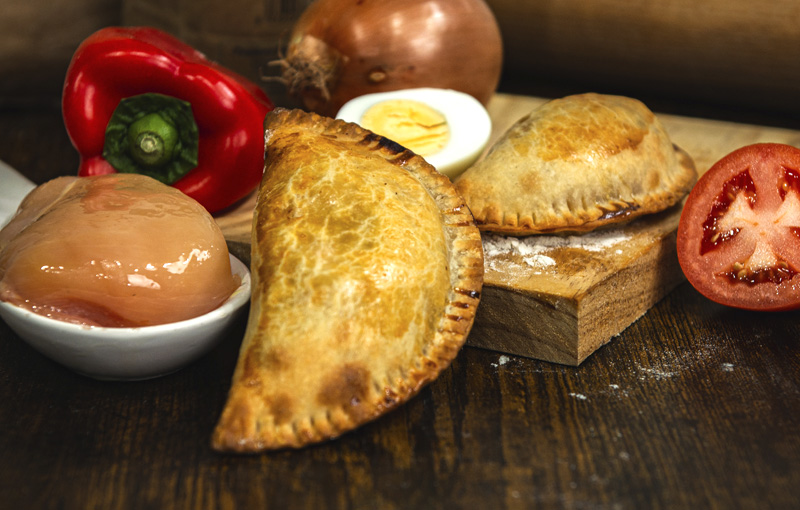 Ingredientes: Pechuga y contramuslo de pollo de corral, cebolla, pimiento, huevo cocido, tomate fresco y orégano
